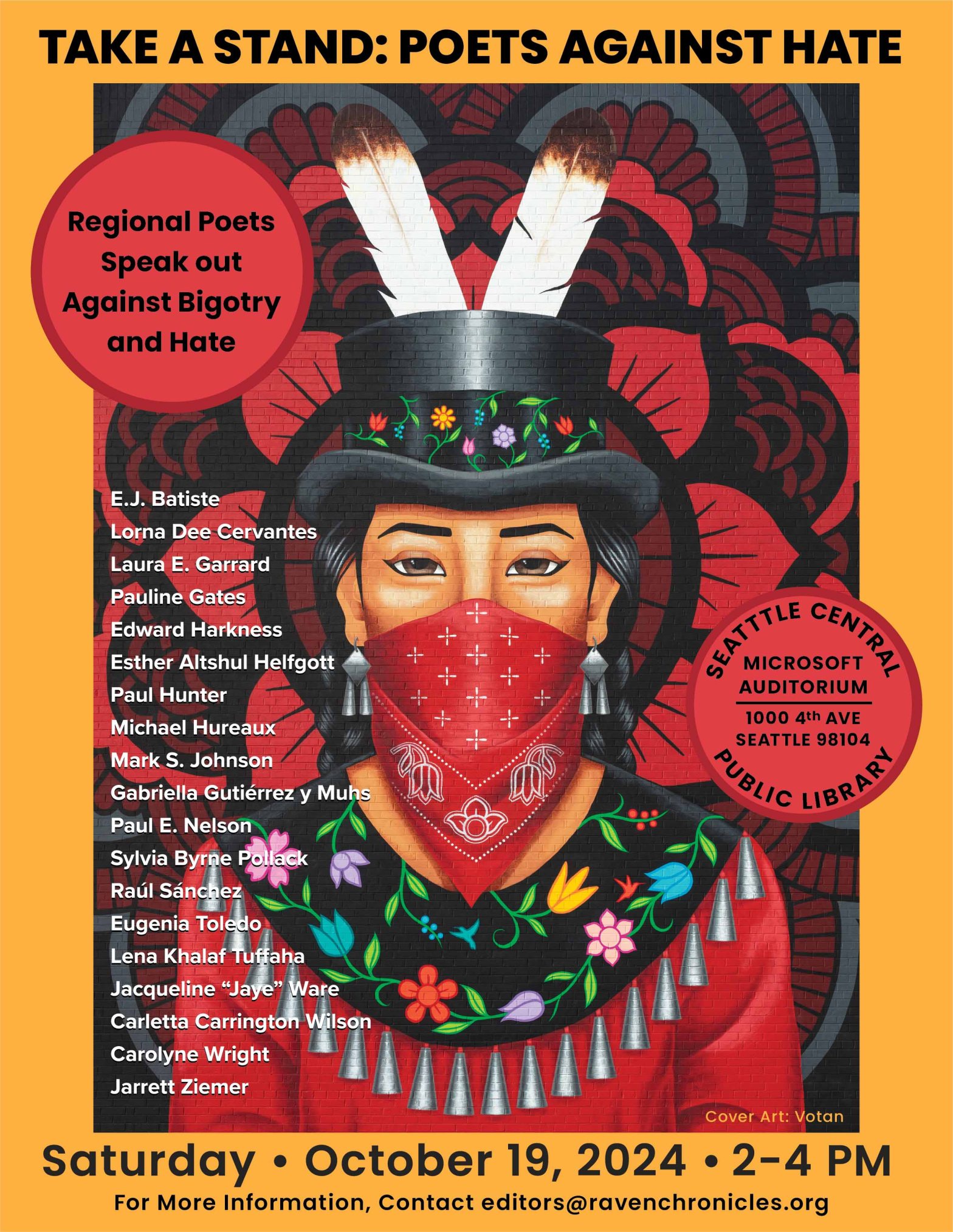 October 19, 2-4 p.m., Seattle poets will read their poems about and take their stands against hate and bigotry.