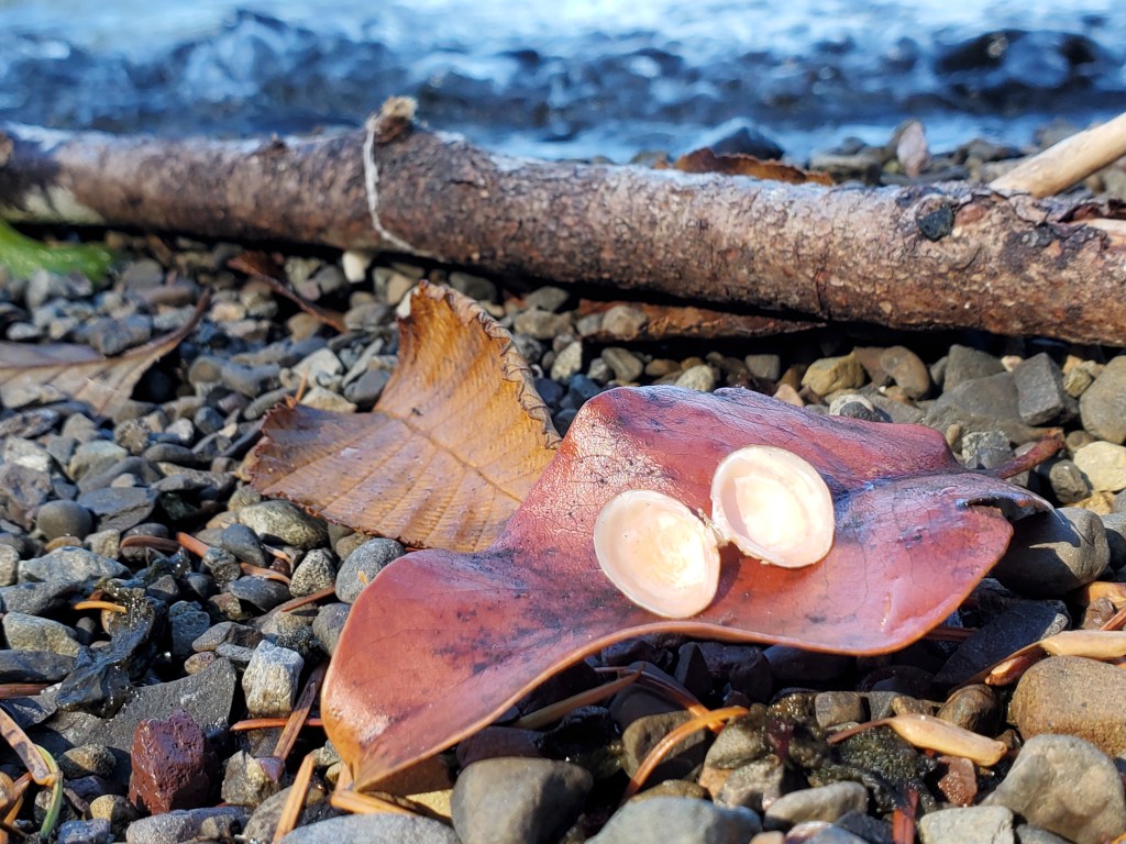 Last week I had the opportunity to stroll the more accessible, gradual gravel path in Webster Woods, which offers a dramatic view toward the Strait. I encountered some beautiful large works in the open air exhibit.
